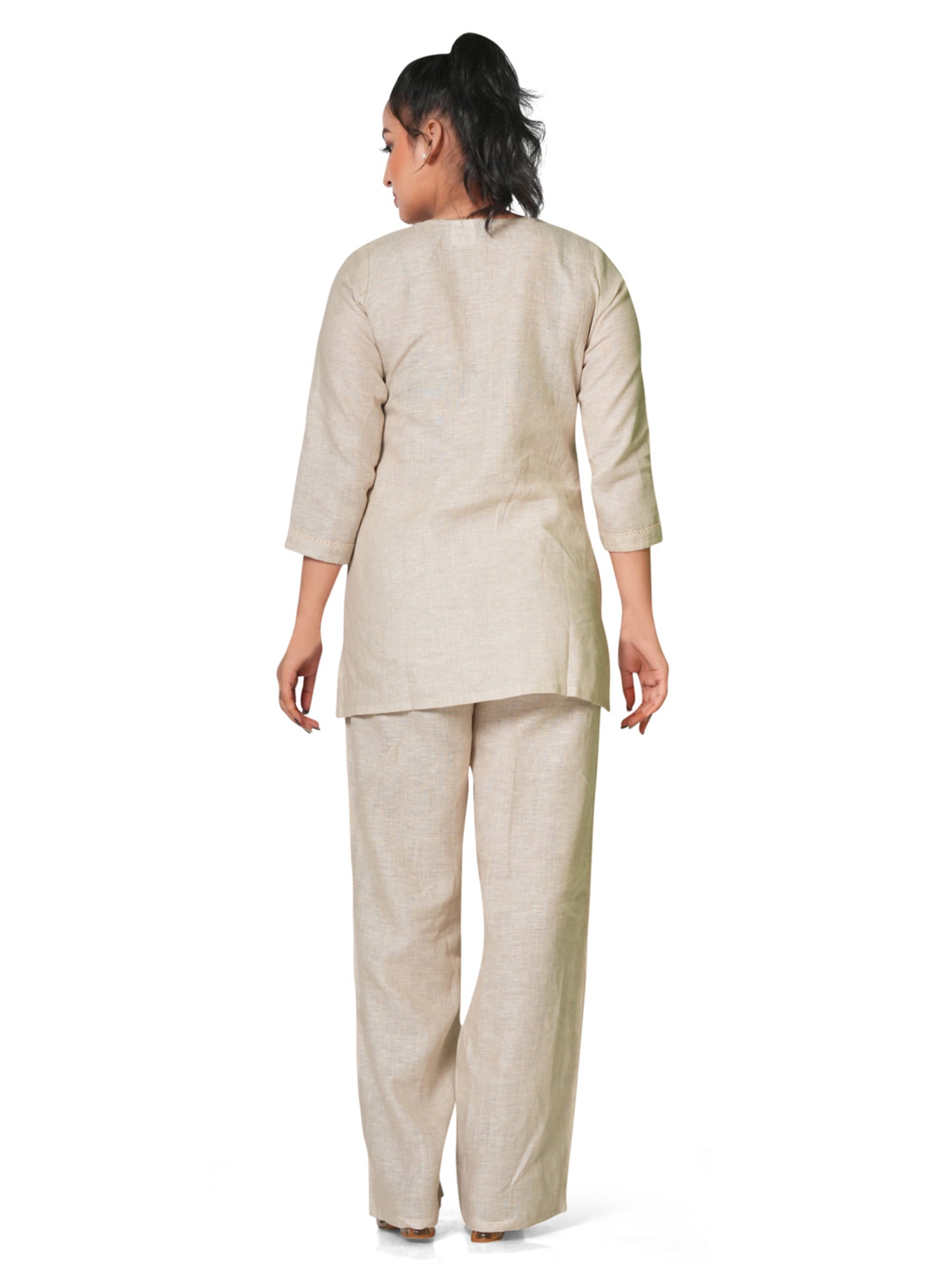 Asymmetric Neck Pure Linen Co-Ord Set in Beige