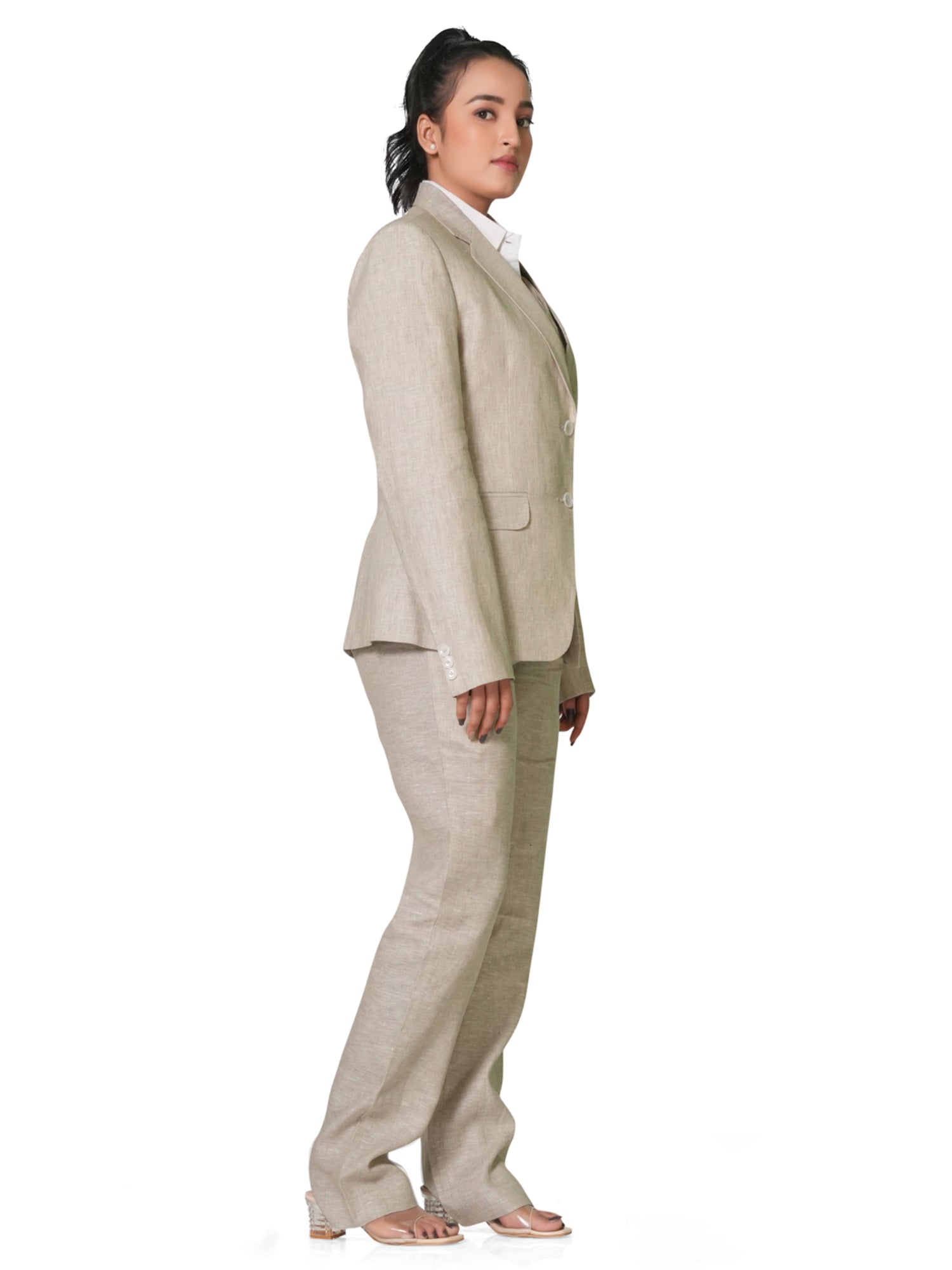 Natural Beige Pure Linen 3-Piece Suit Set for Women